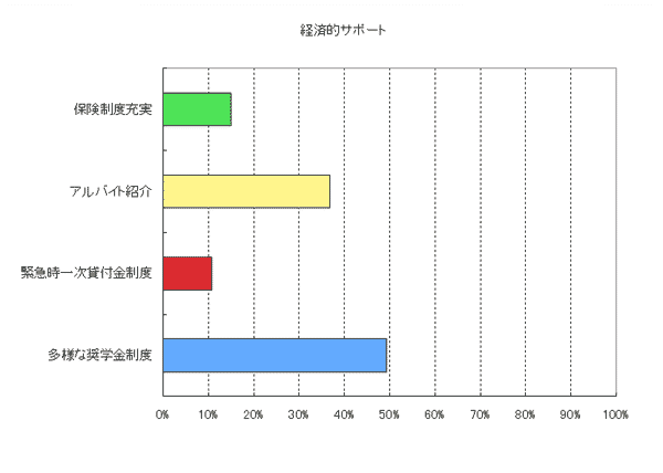 設問3-7a:学生生活サービスについて、下記のうち、実現してほしいもの、いっそう充実して ほしいものは何ですか。いくつでもチェックして下さい。(経済的サポート)