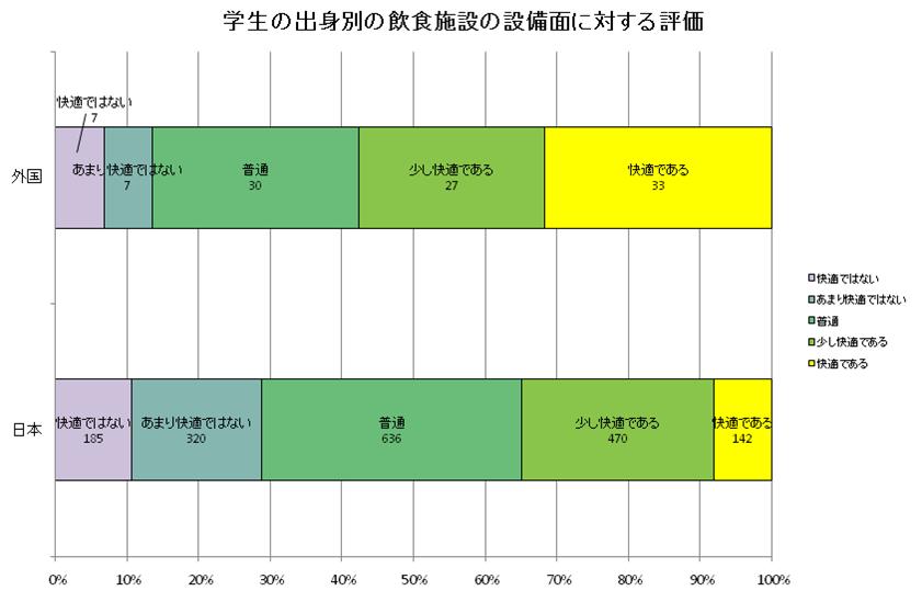 図 4.5.3-1 学生の出身別の飲食施設の設備面に対する評価
