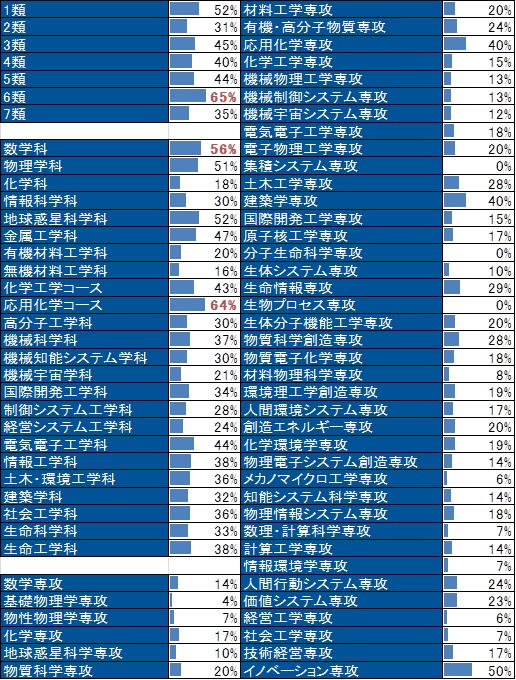 学科や専攻別にみると、建築学科・金属工学科・生体分子機能工学専攻からの要望が多いです。(図 4.1.1-2 類・学科・専攻×レストスペース要望率)。